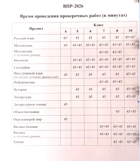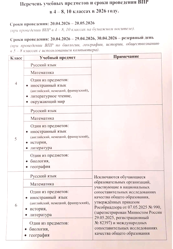 | Перечень учебных предметов и сроки проведения ВПР | Учебные предметы 2026 |