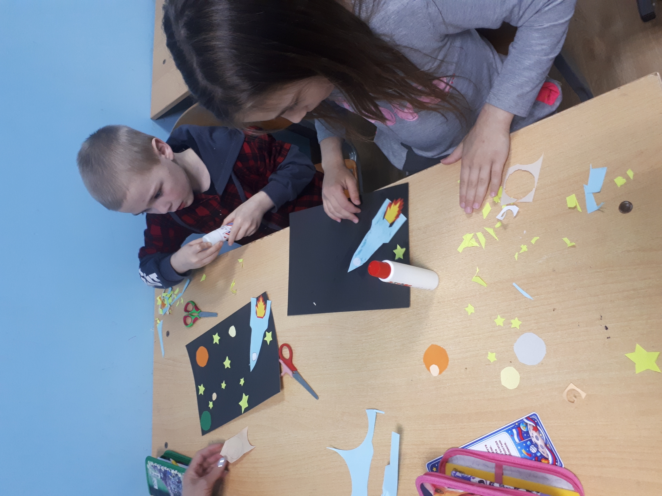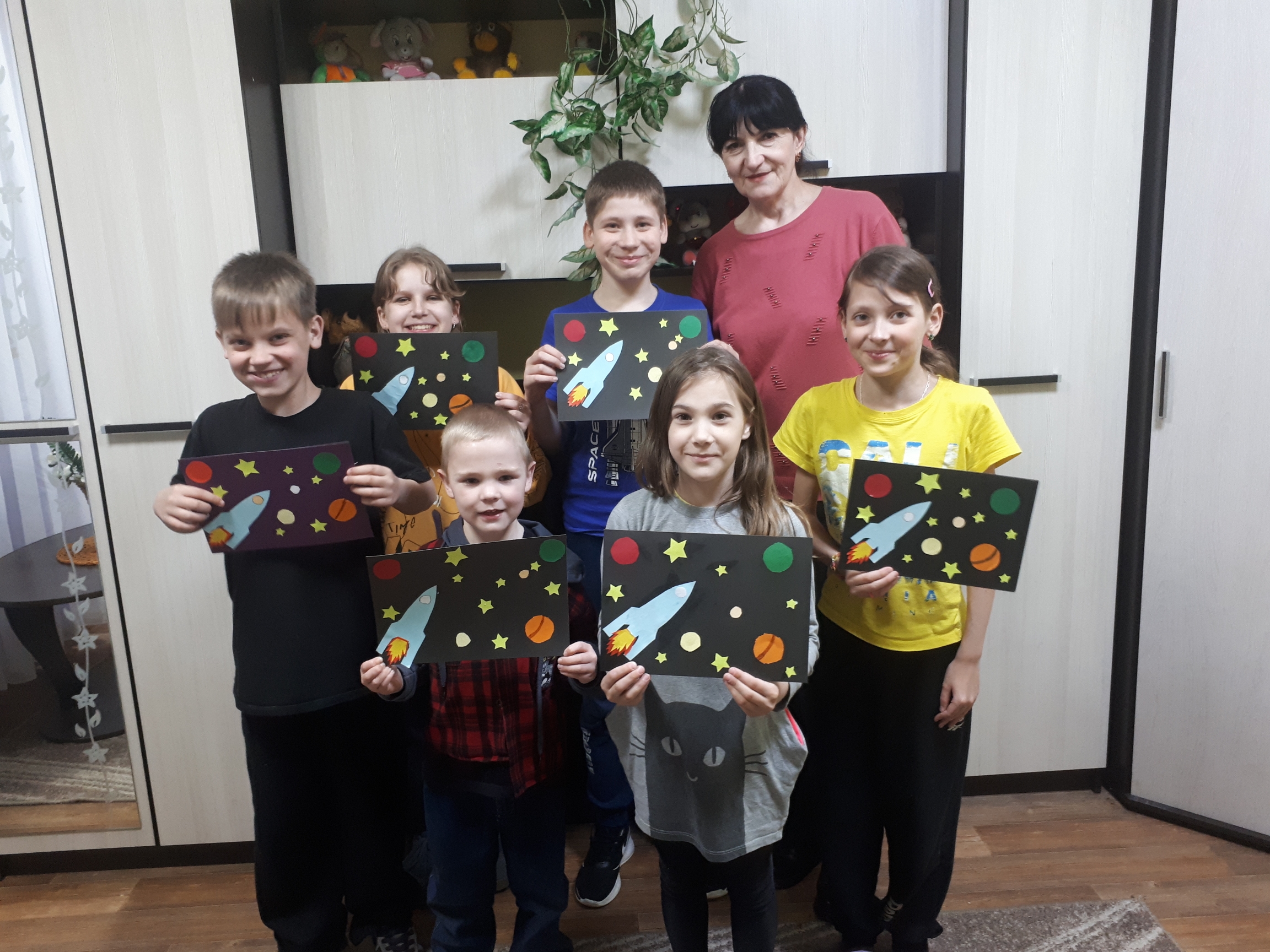 Воспитатель Парфёнова М.И. провела мастер - класс по изготовлению космической аппликации. Работы получились яркими и красивыми.