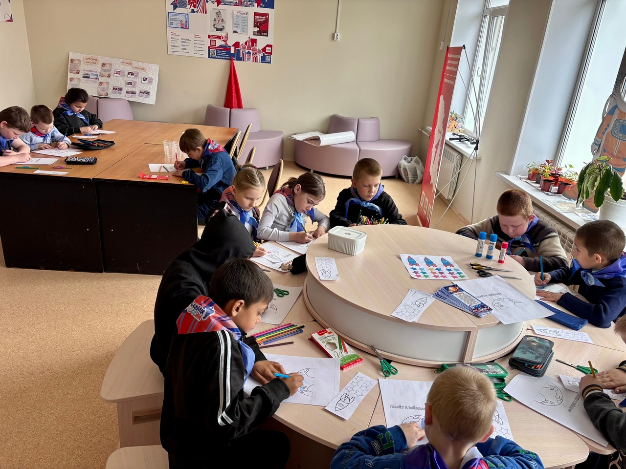 Мастер - класс посетили ученики начальных классов «Орлята России» . Они создали свои талисманы, которые они бы взяли с собой в космос , а в подарок получили закладки для учебников с интересными фактами о планетах.