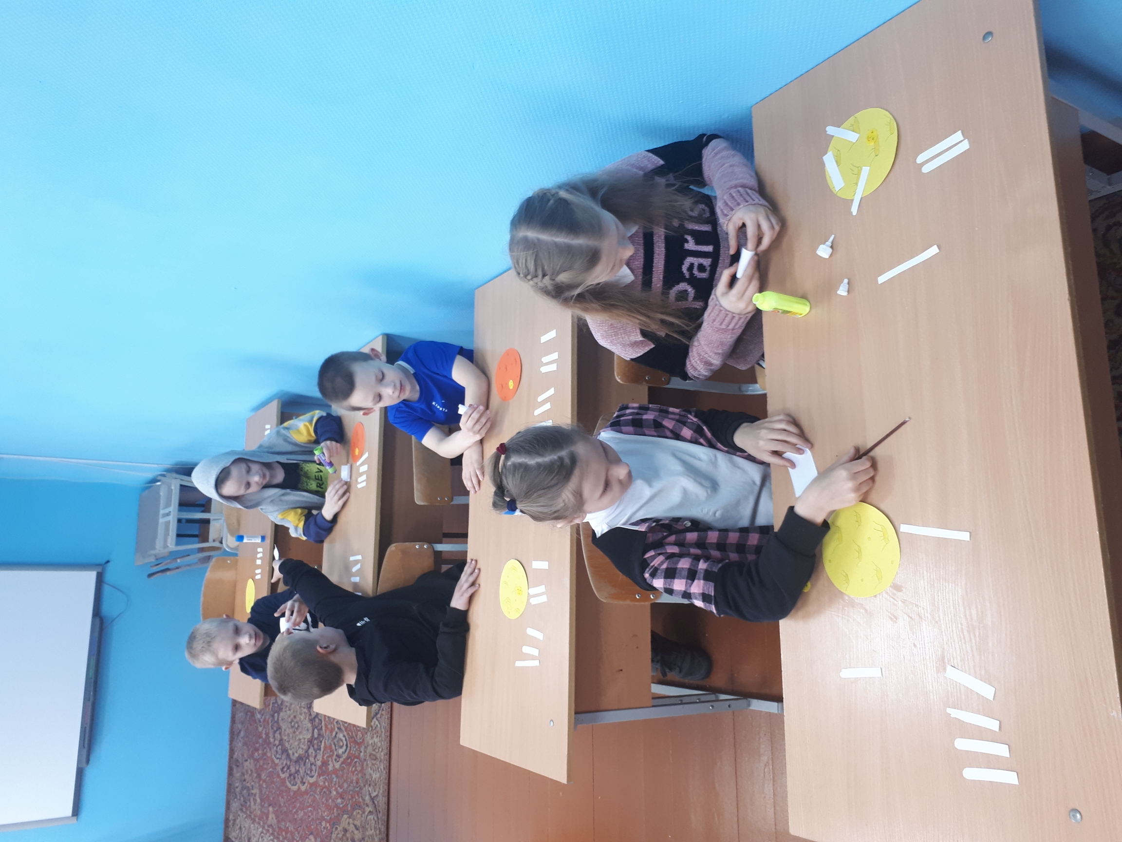 Воспитатель Петрова Н.Н. провела мастер-класс "Космос и мы" с ребятами начальных классов. Все с интересом сделали поделки - космонавтов на планете.