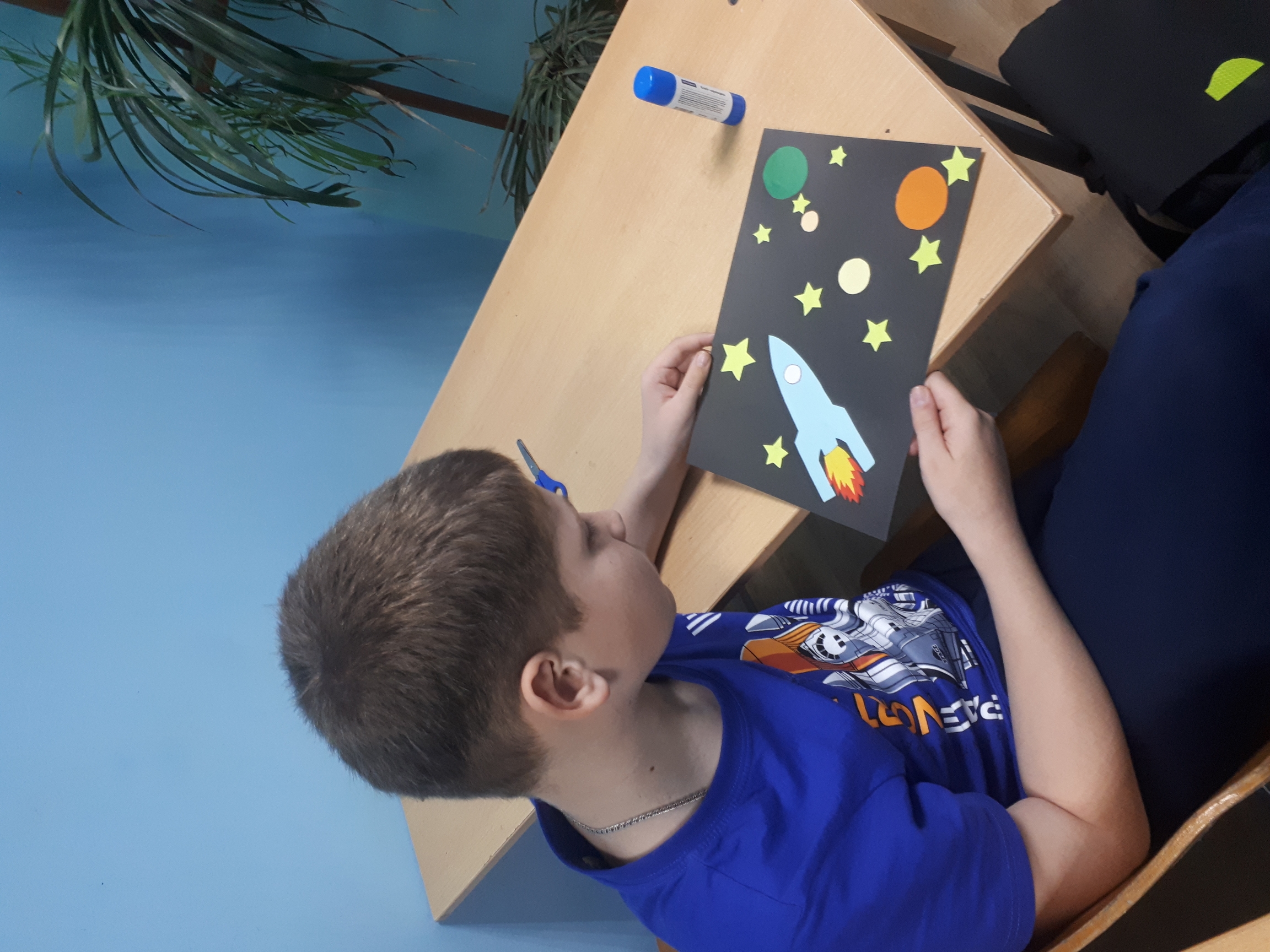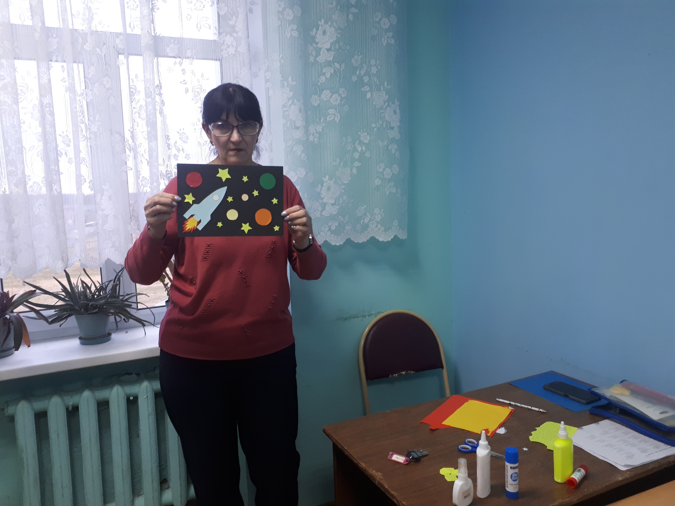 Воспитатель Парфёнова М.И. провела мастер - класс по изготовлению космической аппликации. Работы получились яркими и красивыми.