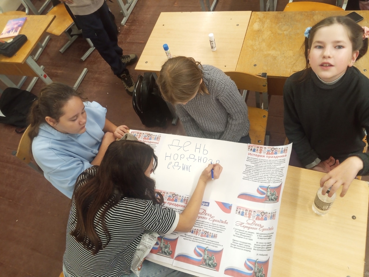 Советник директора по воспитанию Логинова А.В. с обучающимися 5 класса выпустили стенгазету: «Праздник - День Народного Единства».